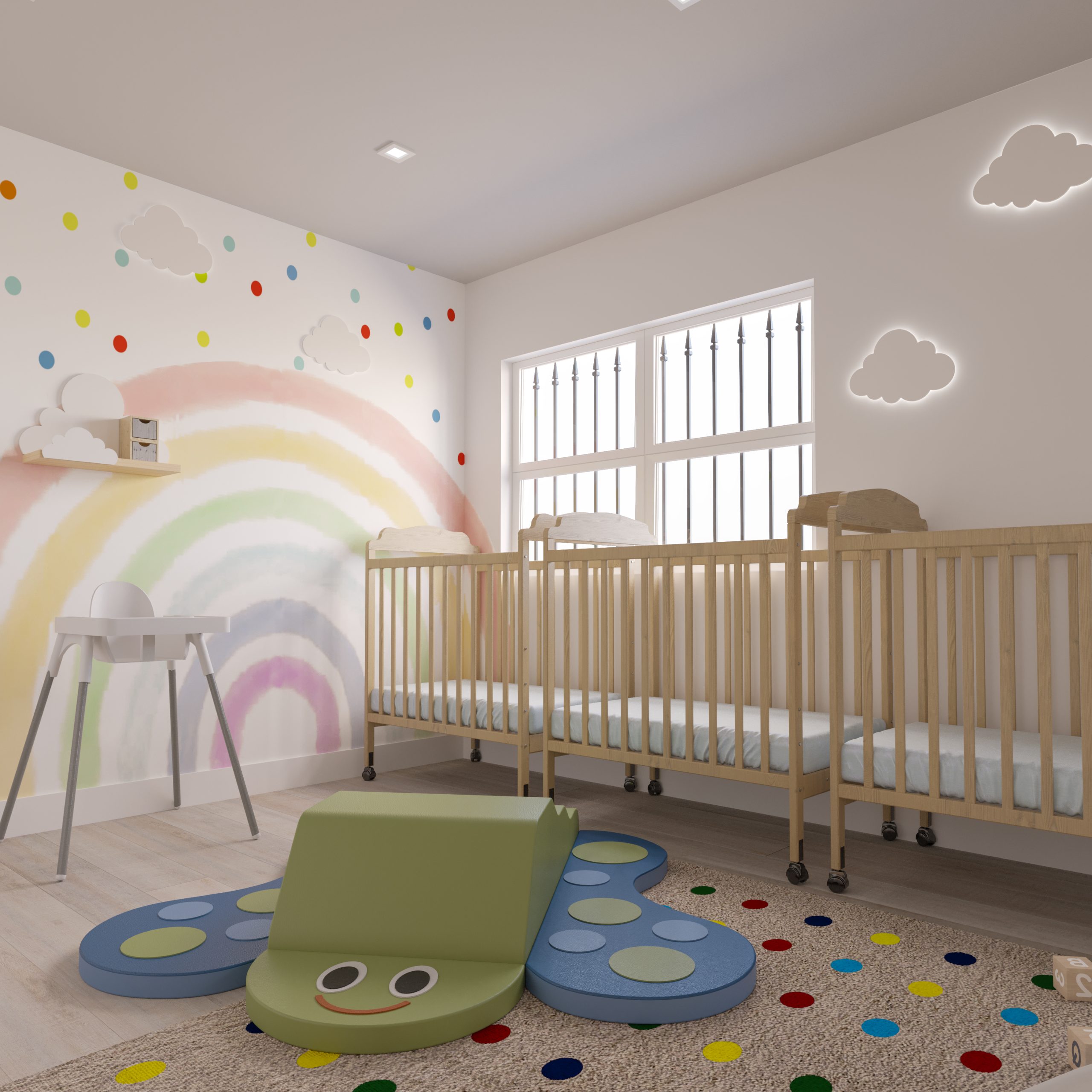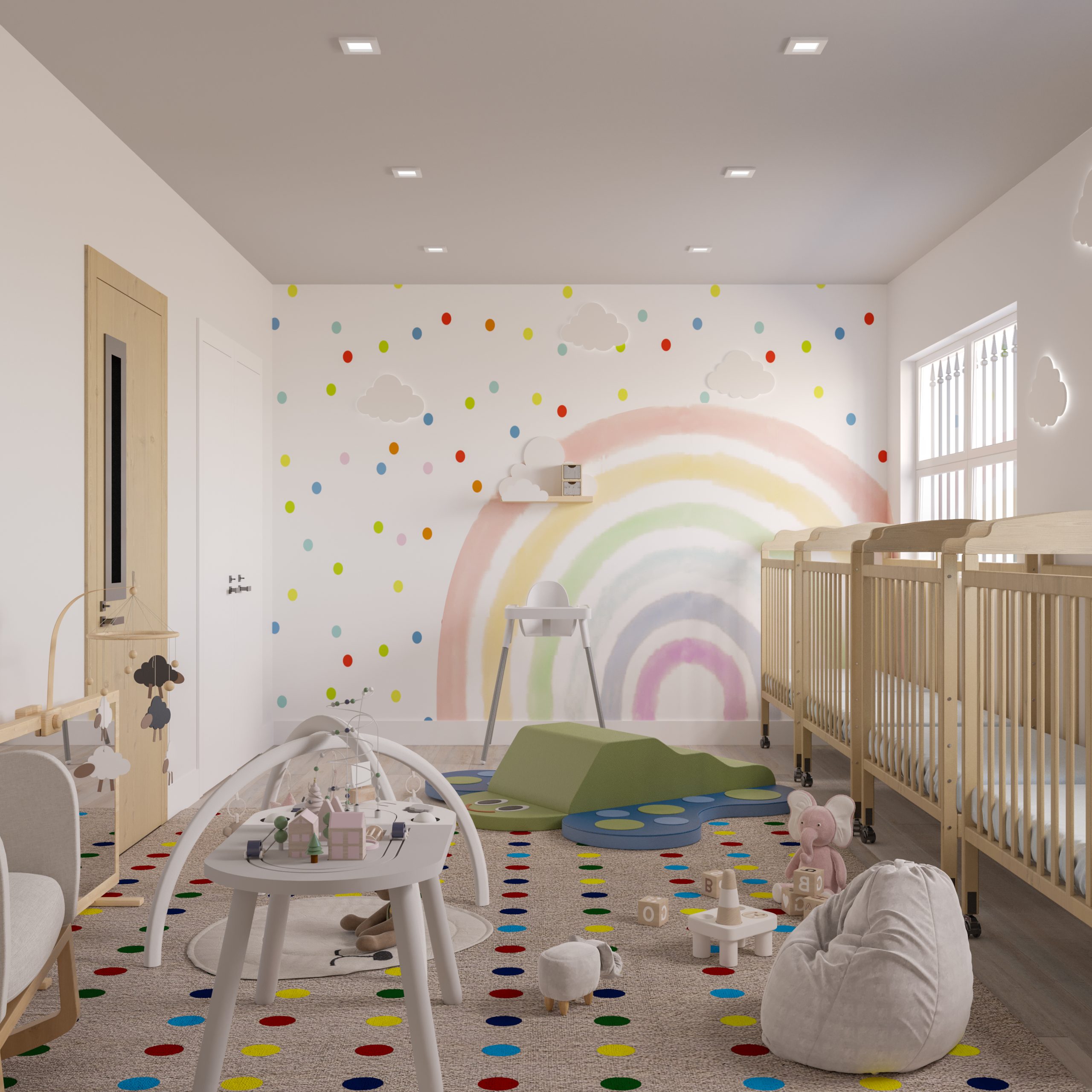 The interior design for Bright Smiles Childcare in New York was crafted to create a nurturing, home-like environment where young children feel safe, engaged, and inspired. The design emphasizes warmth and comfort, with soft, inviting colors that foster a calm and cheerful atmosphere. The layout prioritizes open spaces that allow for easy supervision while offering ample room for play, learning, and social interaction.