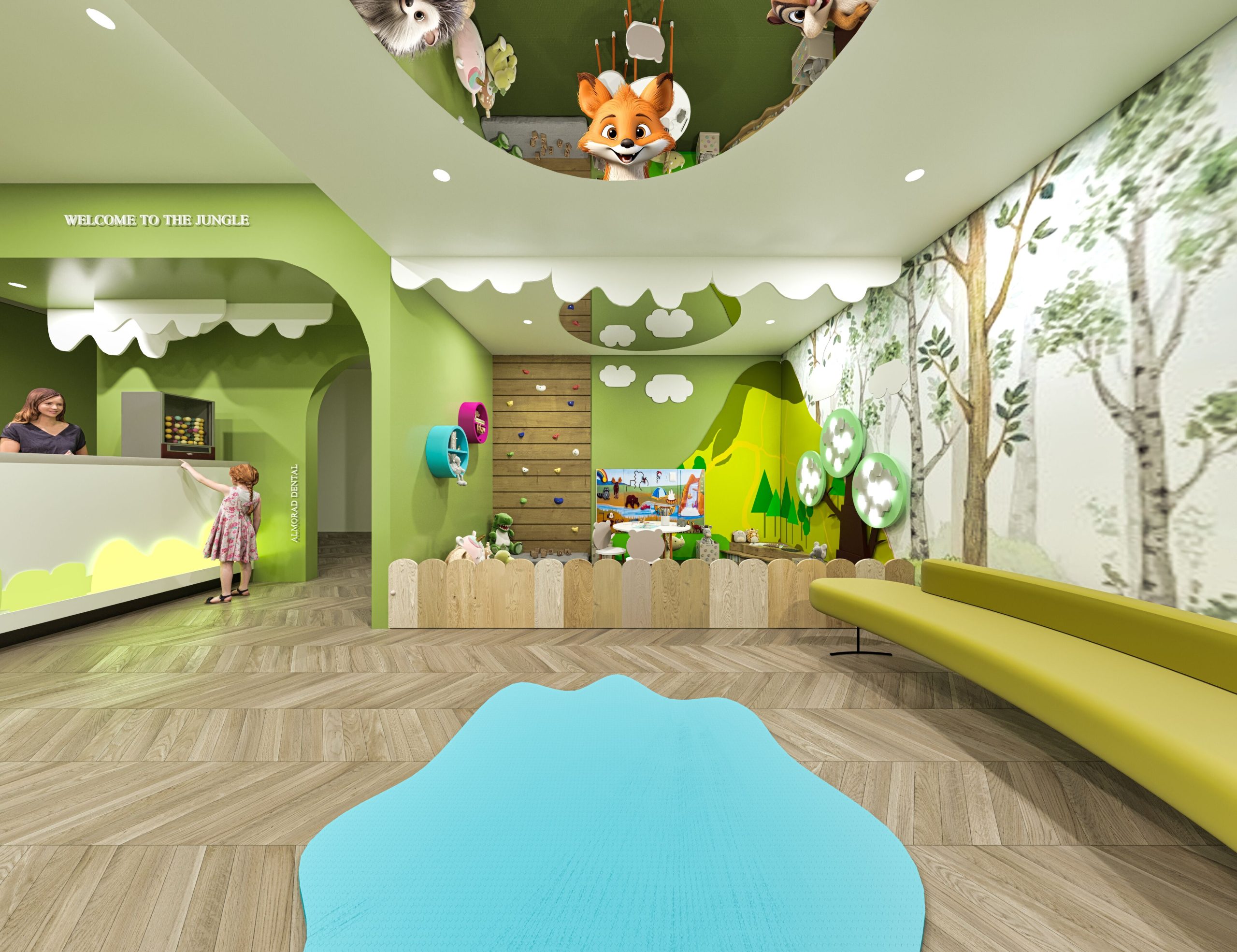 The overall design ensures that each visit feels like a new adventure, helping children feel less anxious about dental care. The jungle-themed dental center promotes a playful, engaging, and calming experience, fostering positive associations with oral health from a young age.