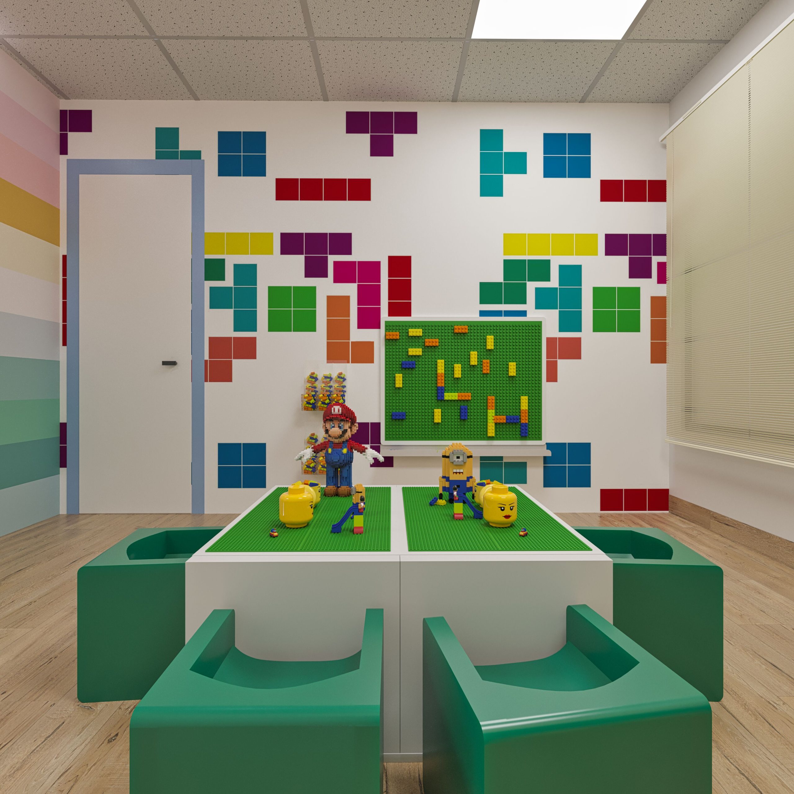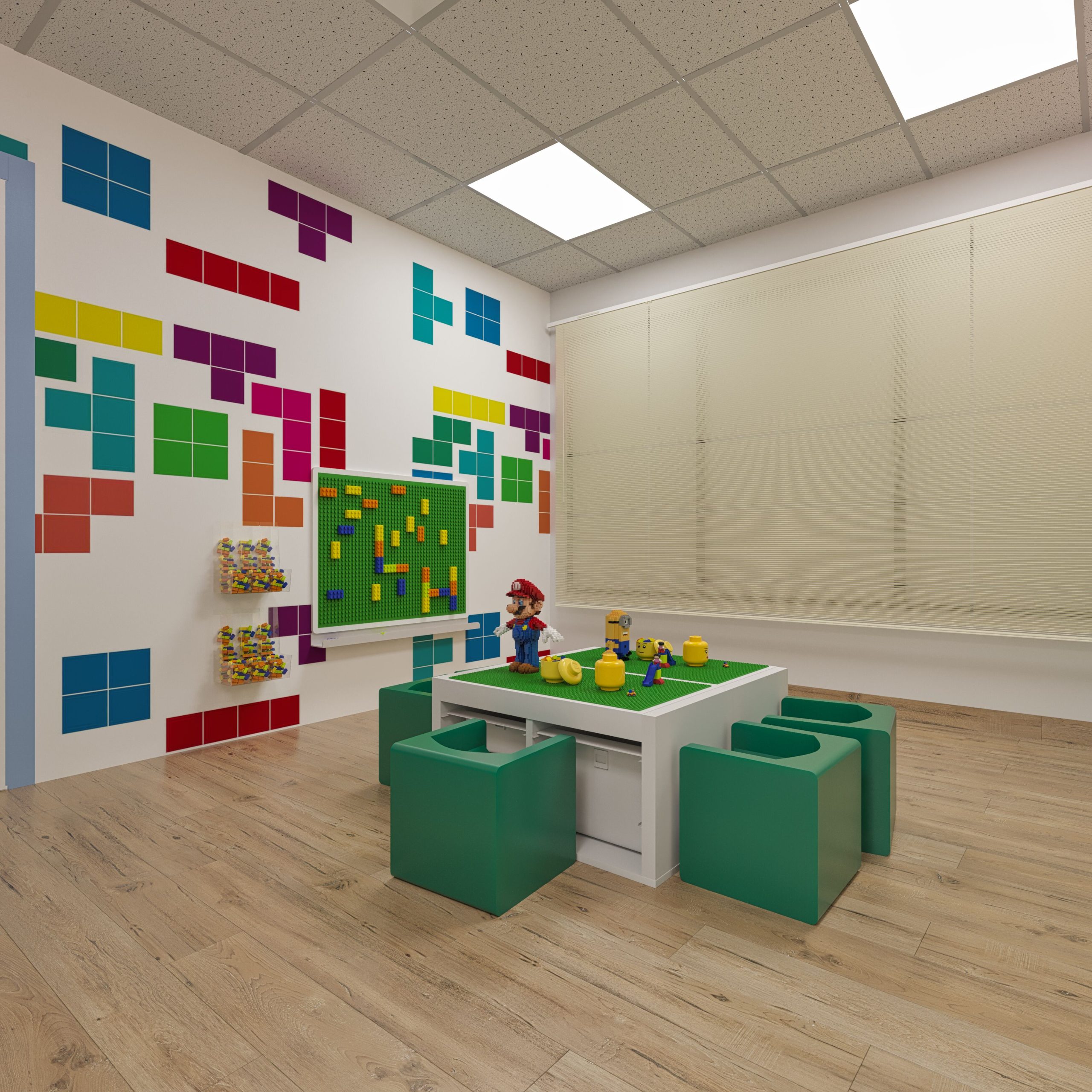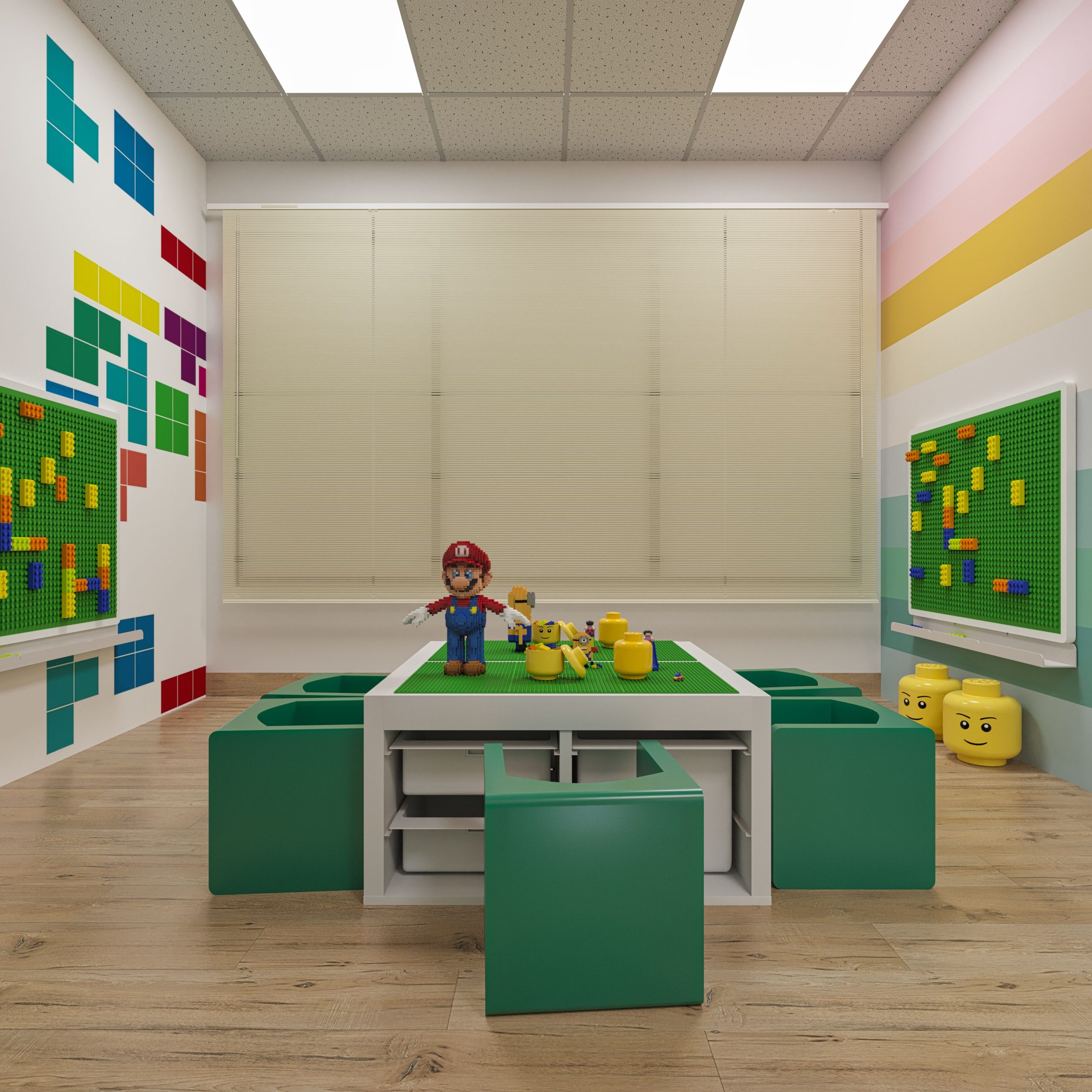 Lego Area: Equipped with adjustable tables and a variety of Lego pieces, this area encourages fine motor skill development and collaborative play, fostering creativity and social skills in a comfortable space.