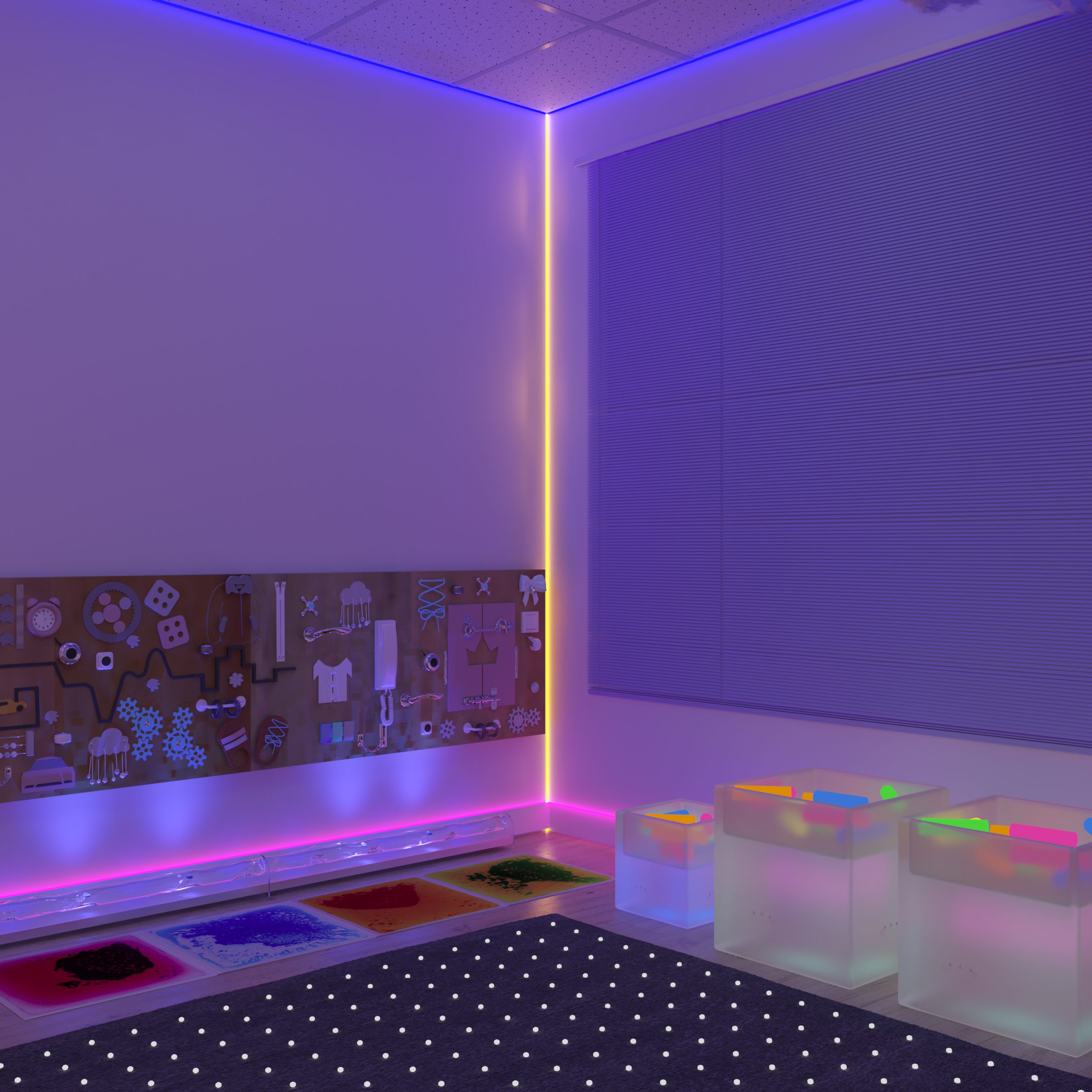 Sensory Room: Designed as a calming retreat, this room incorporates soft lighting, soothing sounds, and a variety of sensory-friendly materials, including tactile walls and soft seating. The sensory room provides a safe space for children to unwind and self-regulate, offering a personalized experience for each child’s unique sensory needs.